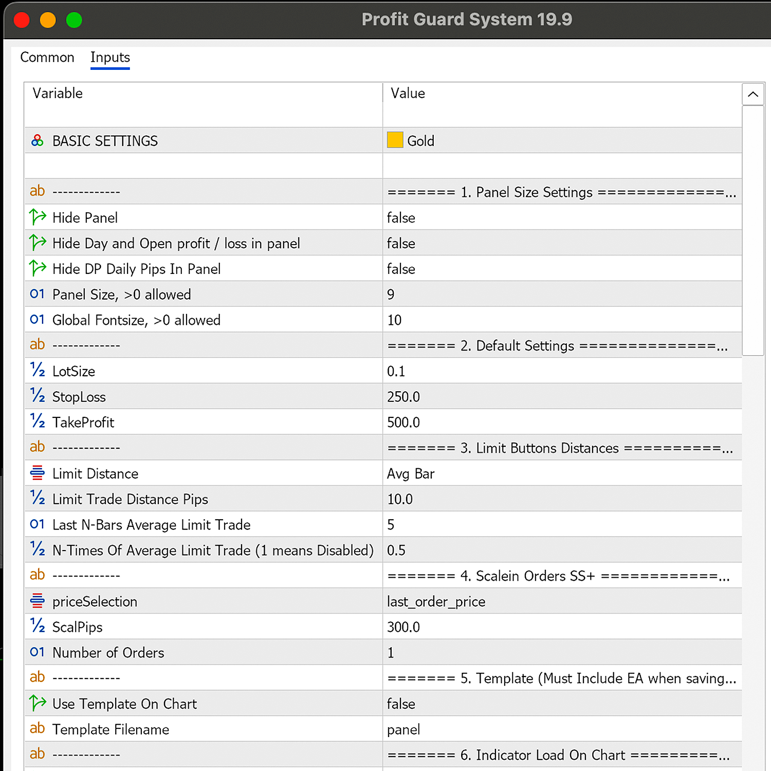 | 6 | PGS MT5 Indicator Load on Chart | Automatically loads the Profit Guard System MT5 Indicator alongside the panel. |